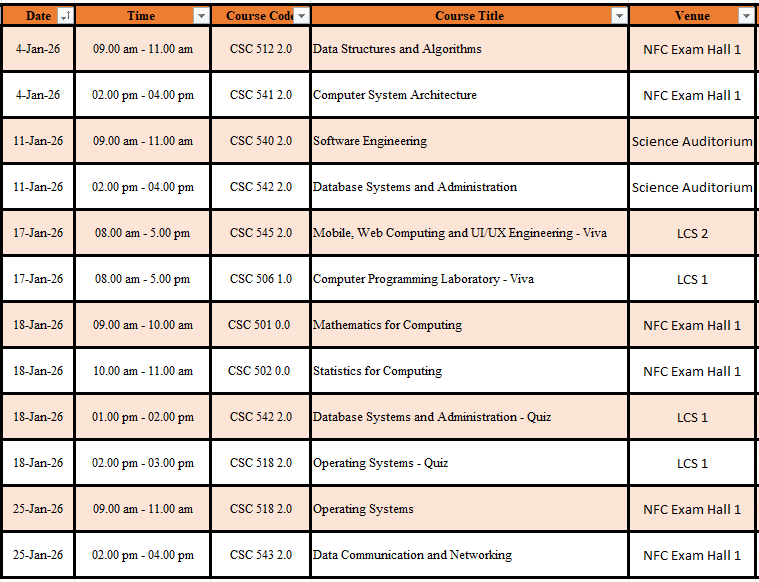 First Semester Terminal Course Unit Examinations (January 2026) (Intake VIII, Repeat VII, VI, V, IV)